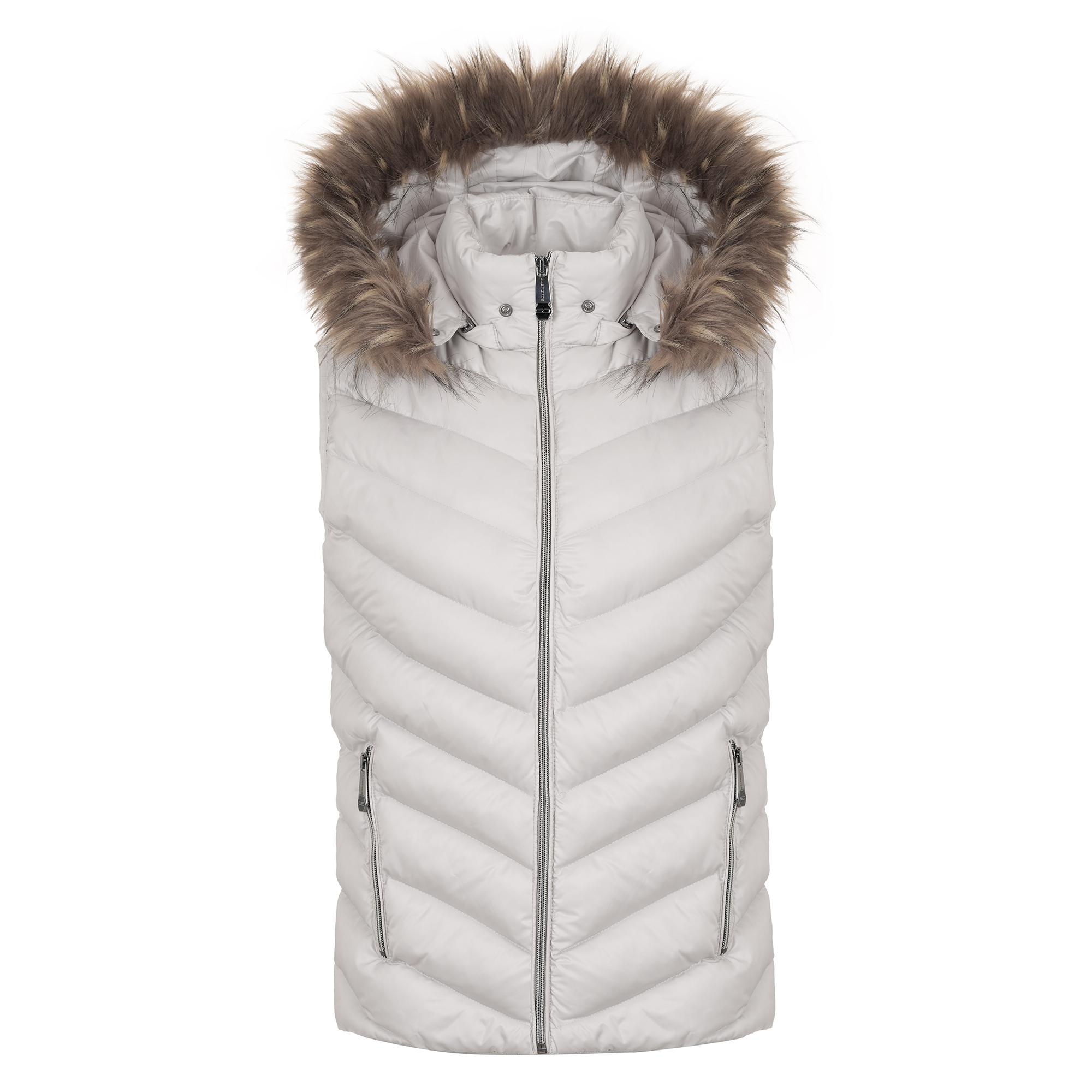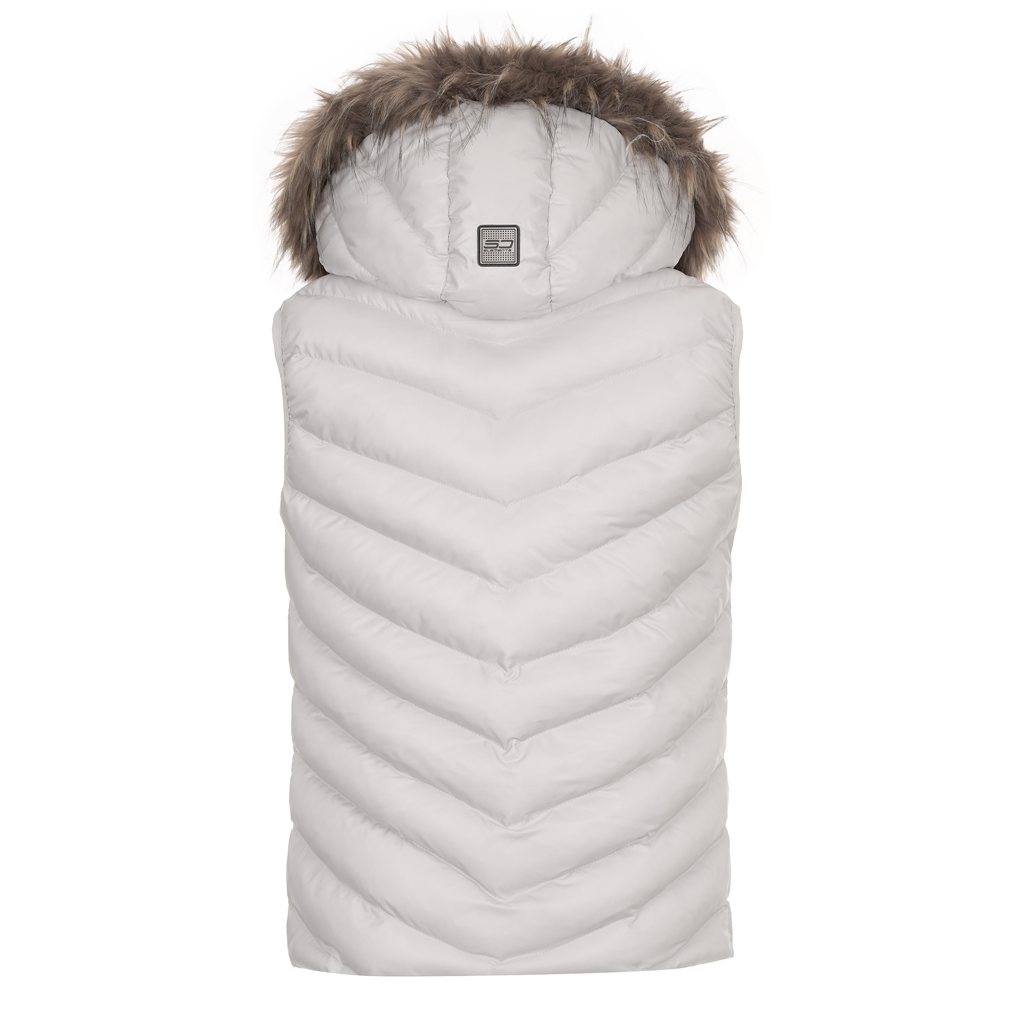Дамски елек подходящ за всеки сезон,качулката с еко пух се маха и елека може да се носи и в по-топло време.Пълнеж силиконова вата.
