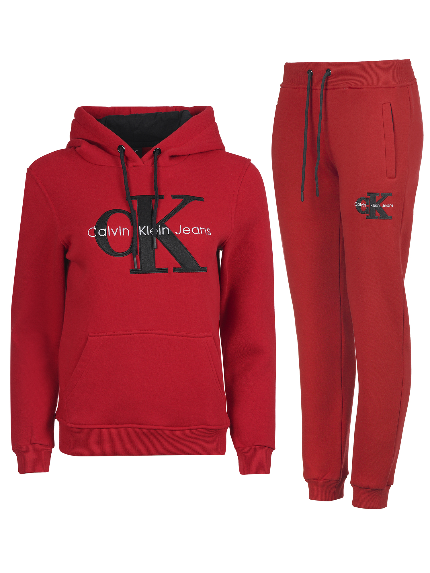 Суитшърт с качулка и връзки,джоб тип “ кенгуру“ и голямо бродирано лого,панталон с ластичен колан с връзки и маншети на крачолите,два джоба с цип и бродирано лого.