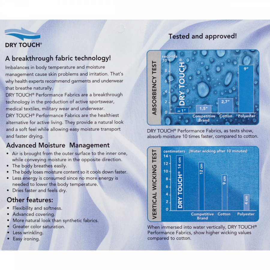 Мъжка блуза изработена от висококачествена Dry-TOUCH тъкан, която извлича пот от тялото. Тъканта е изработена от кухи влакна, които ви позволяват да останете по-свежи. Въздухът лесно прониква а водната пара напуска.