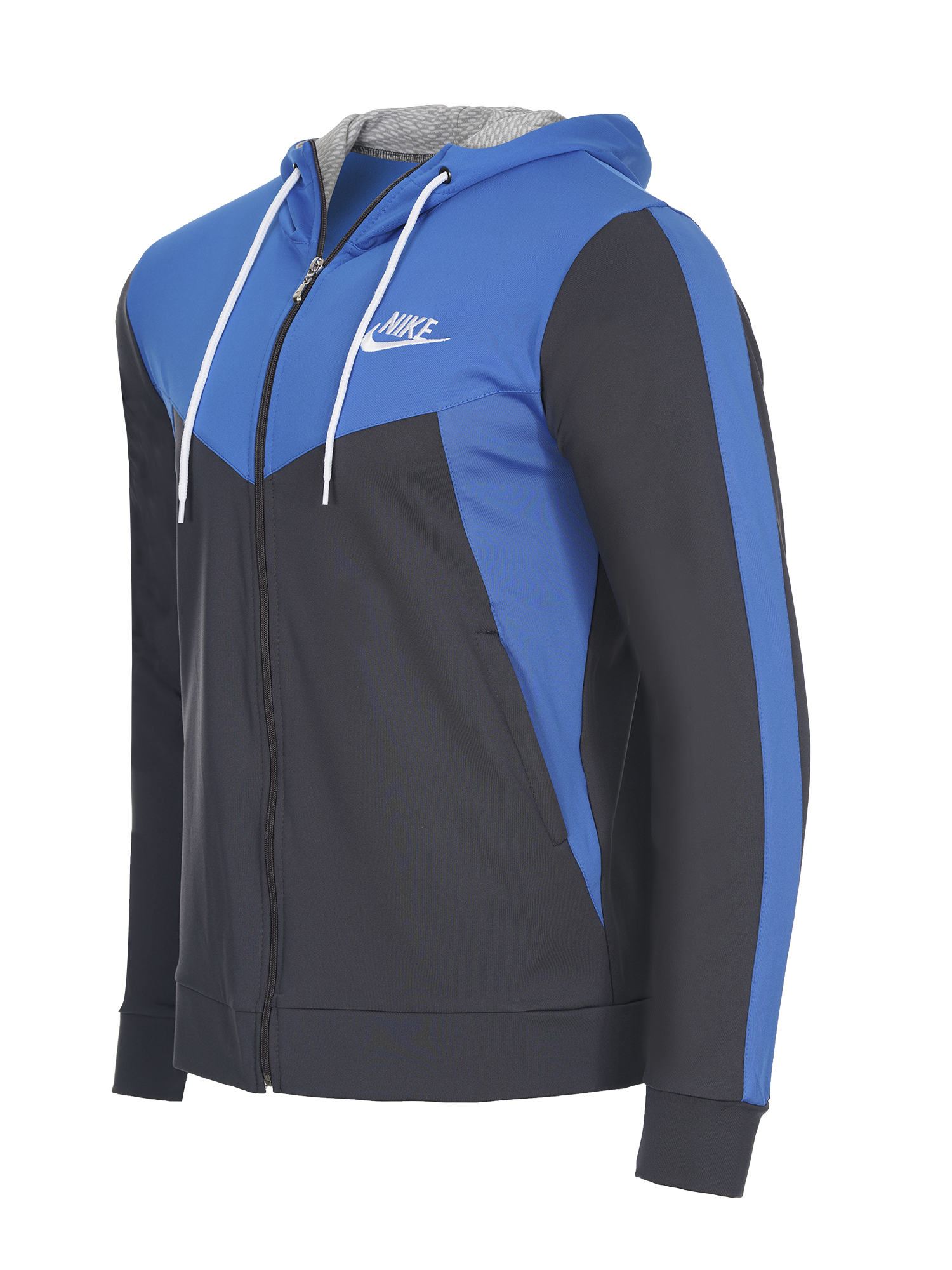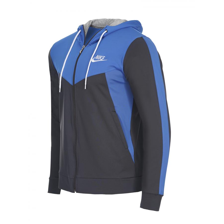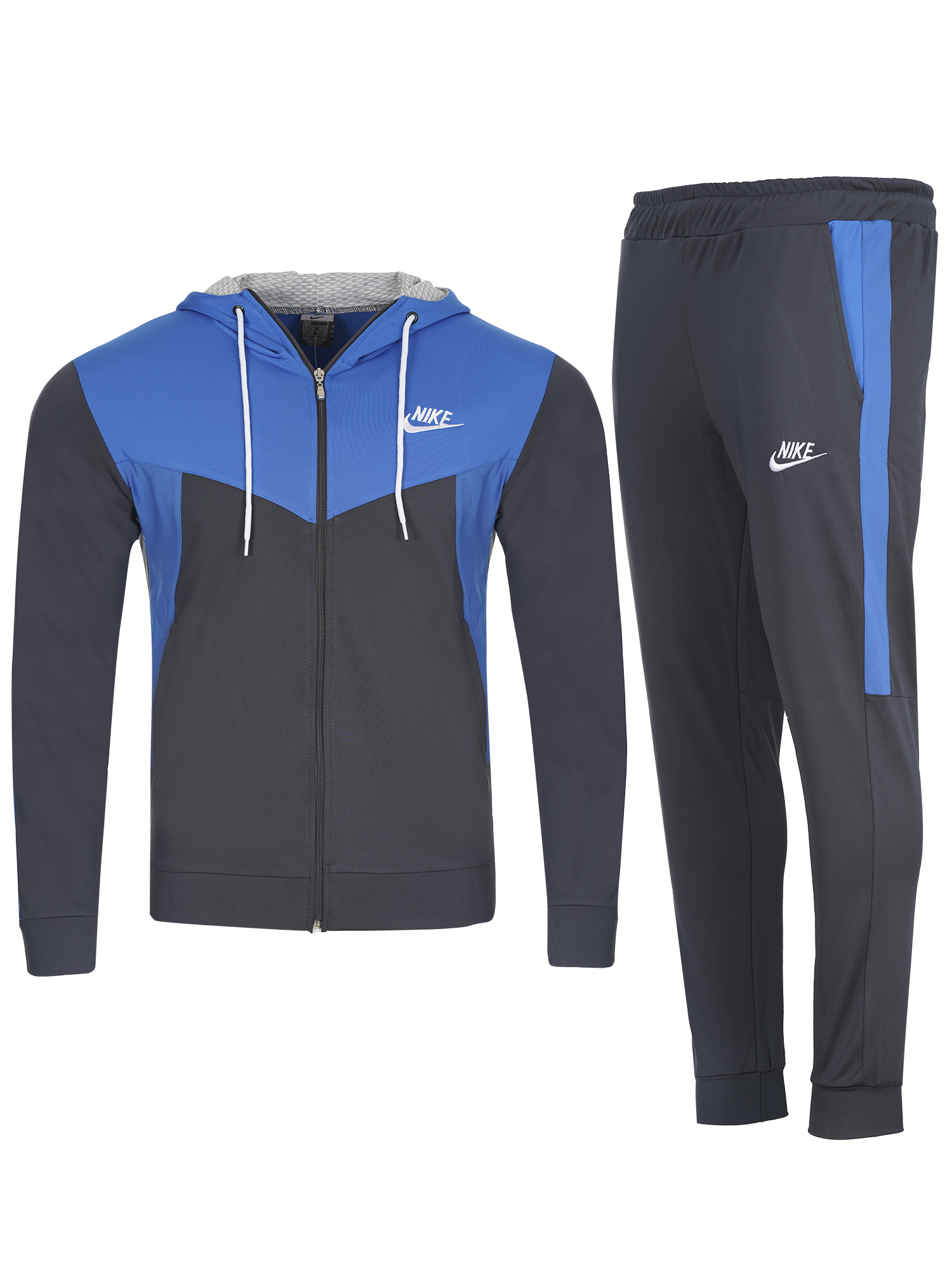 Мъжки спортен екип подходящ за  спорт и ежедневие.Екипа е полиестерен с ластични маншети  и колан,с висока яка и качулка.Има странични джобове,закопчаването е с цип.